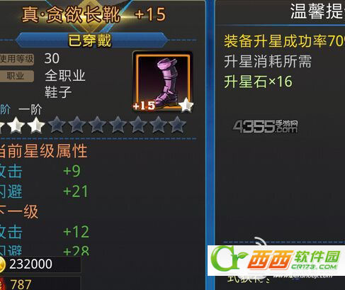 装备升级会消耗一定数量的升星石