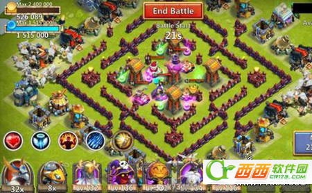 其实炸弹的伤害并不算太高,但是能对城墙有很好的辅助。前期的时候,城墙不够长,剩下的口子用炸弹弥补。等到城墙足够了以后,还是会有一些火力死角你的哨塔打不到,这就需要炸弹来辅助了。城墙围的好才是稳固防守的关键因素,围墙主要把矿、储存罐围好,因为你最怕的丢钱,魔法就不必太过在意了,有实力就围,没有就放弃。
