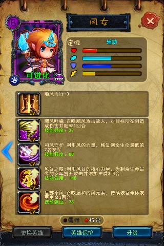 风女作为游戏初期就可以选择的三名英雄之一,是入手最早的辅助型英雄。尽管入手早,但风女绝对不是一名只在前期用来过渡的奶妈,甚至可以说风女是《最萌英雄》中性价比最高的卡牌之一。风女的四个技能涵盖了眩晕控制、攻击Buff、防御护盾、群体恢复等方面,无论是在推图还是在竞技场中都能发挥相当强力的作用。用飓风击溃敌人,以和风守护友军,这就是风女的使命!
