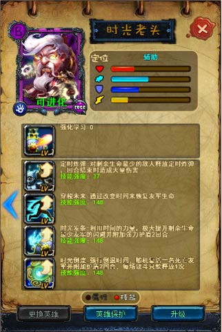 终于讲到《最萌英雄》最强辅助—时光老头了!虽然小编一直不明白一个能够掌控时间之力的强大法师为什么会变成一个乱扔炸弹的疯老头,但是一旦接受了这种设定,你看到的将是一个攻守兼备,技能强大的辅助型英雄:本身自带高闪避,还能为队友加持闪避效果;回血、护盾一样不少;虽然没有眩晕控制,但是技能定时炸弹伤害极其可观。此外,时光老头还拥有一项开挂的技能“时光倒流”,能让死去的友军复活!想象一下,废了九牛二虎之力才击杀掉的坦克瞬间信了春哥,满血复活,是不是有种想怒砸手机的冲动?