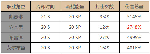 玩仓木熏的玩家看到这个图表估计就郁闷了,其他3个职业的伤害都已经上4000%。但是仓木熏的伤害只有2748%的基础伤害。