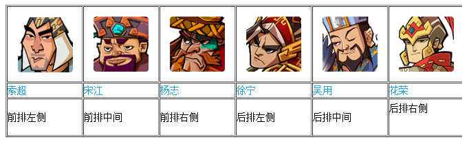 还有一个组合就是五虎上将加吴用或晁盖或花荣或戴宗等
