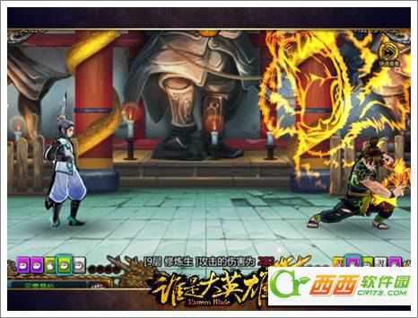 谁是大英雄就像是一场设计好的战役,每一个章节就相当于大大小小的战争,你和电脑各自操纵一支军队作战,通过击败对手来取得胜利,这就是大英雄的基本模式,还有一点,每次战斗中都可以选择五种不同的武功来战斗,而且排列顺序的不同,效果也不一样(考验智商的时刻到了。。。)