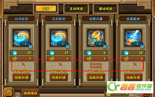 5、武将技能分为不同的颜色品质,由高至低分别为紫色,蓝色,绿色,白色。品质越高的技能效果越好,技能的攻击强度越高,升级后技能强度的提升量也越大。