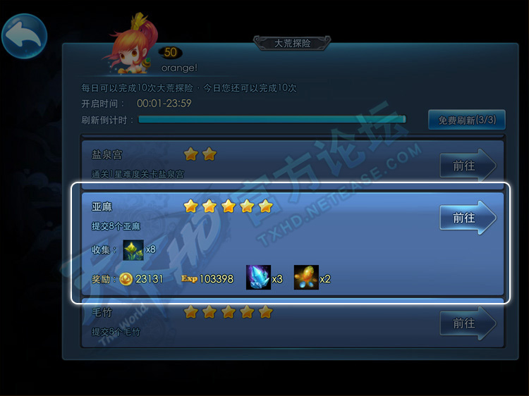 《天下HD》中的日常任务可以说是经验来源最轻松快捷的途径了,我们在25级即可开启日常任务,每天可以完成10次。25-29级的任务通常为通关副本,到了30级就会出现收集材料的任务