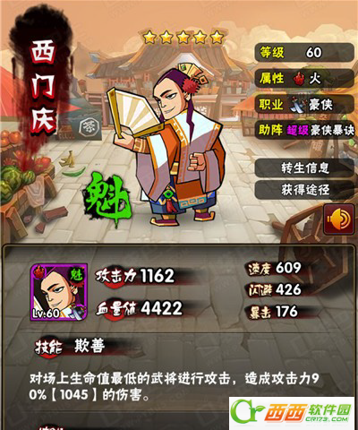 仗势:对场上生命值最低的武将进行攻击,造成攻击力90%的伤害。