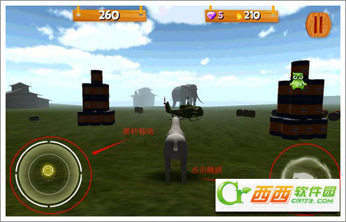 《冲撞山羊》是一款非常恶搞的休闲发泄游戏,如果你曾经玩过《模拟山羊》的话,就会发现它基本就是前者的移动简化版。在游戏中你可以控制一直逆天的山羊,然后用力地拱翻一切你所看不顺眼的东西,无论是坦克还是大象!更加逆天的是,这只山羊还能开直升飞机!好吧,进入这个游戏,放弃一切常识,你所需要的就是和这只脱离常识的山羊不停地探索眼前的世界。