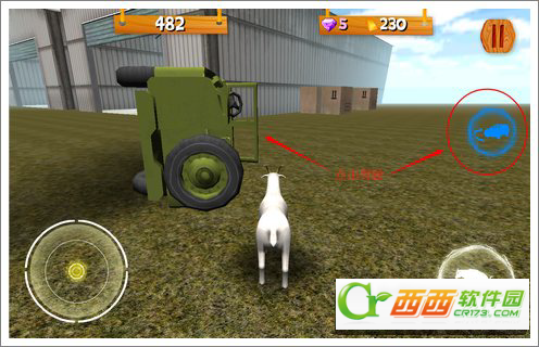 滑动左下角虚拟摇杆,操控山羊上下左右移动位置;