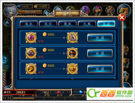 只要收集到材料,就可以在装备强化合成界面合成自己想要的时装。