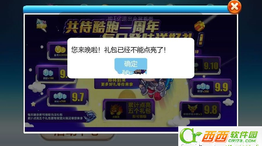 天天酷跑中秋节活动多多,小伙伴们不知道是否领取了丰厚的奖励呢!但是有的玩家们在领取礼包是却接到:您来晚啦礼包已经不能点亮的提示!那么,礼包不能点亮该怎么办呢?下面,来看小编为大家带来的详细介绍!