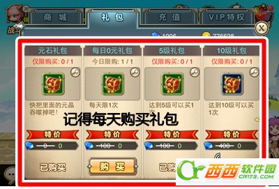 第二件大事:礼包必须买。游戏每天都会出现0元礼包。这个礼包登陆的第一时间就入手了,还是那句话,白来的东西虽然不一定是好的,但是总比没有好。记得每天都要打开哦。
