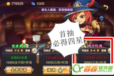 酒馆是《混沌之理》招募英雄的地方。和同类游戏差不多,都是分为三种召唤模式,钱越多自然属性就越好。这里小编需要和大家说明的就是,第一次的首抽,建议各位小伙伴在满足了300钻石就马上用掉。毕竟能得到一个四星的英雄,对前期来说,队伍的整体能力会有质的飞越。
