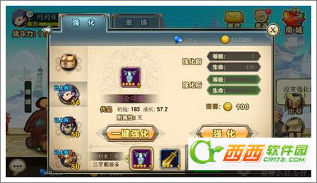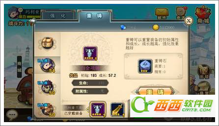 装备强化:装备可以通过在铁匠铺内进行强化来提升其附加的属性,每次强化需要消耗金币 (注意:装备的强化等级不能超过主角的等级)