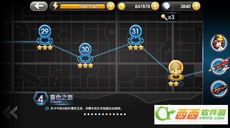 小伙伴点评:这些就是天天飞车关卡的全部种类了。对于闯关模式来说,不仅仅是配件的升级材料和进阶材料的来源,还是幸运点,金币,钻石的来源哦!