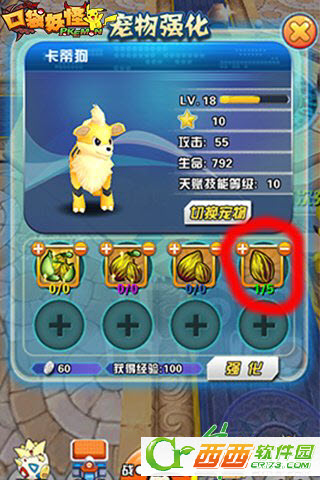 首先来说说宠物的提升,在《口袋妖怪3D》中宠物的提升可不仅仅是简单的吃狗粮升级,而是通过吃“魂魄”、“胆色”、“碎片”等通用物品来升星级。宠物除了升级之外还有进化,虽然这个进化与升星其实差不多,都是进化一次之后属性有大幅度提升并激活高阶属性,但在《口袋妖怪3D》这个游戏里,与众不同的是进化素材的稀缺(好吧其实我来吐槽的),简直是太难弄到进化基因了好吧!!T_T神秘商店里每天只能买一个,这要凑到驴年马月才够我的宠物升级啊?难道是我的VIP级别不够高?