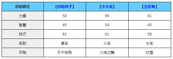 通过上面的表格想必大家也清楚的看到了三个宠物的基础的数据属性,下面小编就通过数据来分析