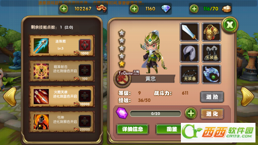 4.弓神(进化到紫色开启):增加全体友方物理攻击