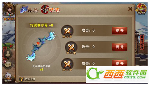 传说兵器强化等级+8之后就可以进行精炼,精炼可以额外追加兵器的基础属性,点击精炼右侧的提升再选择一把具有主兵器的属性进行精炼强化。