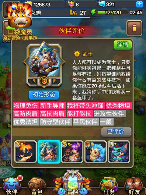 魔幻冒险卡牌手游《口袋魔灵》安卓版已经正式发布了,《口袋魔灵》安卓版这款游戏集战斗、养成、休闲于一体的魔幻冒险卡牌手游,在这个新奇的魔幻世界里,众多独一无二的魔灵都能进化至终极形态。除此之外,还有魔法农场等休闲设定,玩家可以与好友一起互动种菜。这里有数十种新奇的魔灵,每种魔灵都有潜力进化成不同的酷炫形态,最终成长为最强大的魔灵。在魔灵进化的历程中,功勋奖励可以换取进化所需的装备,在这里小编为大家介绍一种轻松获得功勋奖励的方法——评价系统。