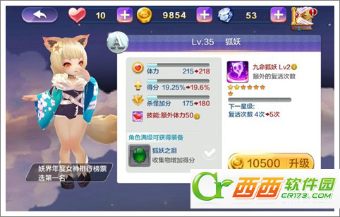 一个狐妖之力就是非常不错的体力加成技能了。再配上一个九命狐妖,复活九次。那狐妖你才是要有多少体力?你究竟想跑多远?