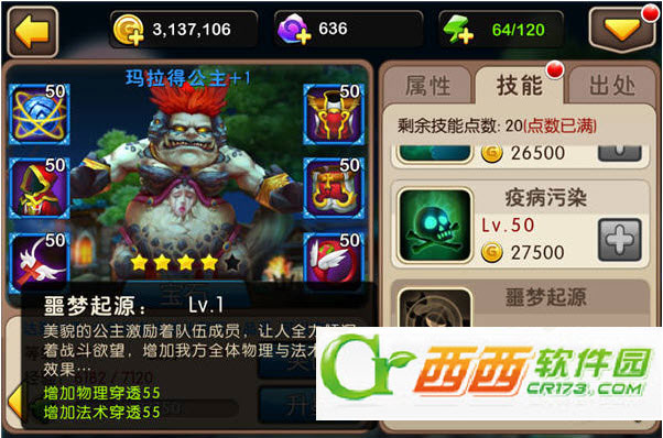 首先我们来看看公主升紫后解锁的技能:噩梦起源,增加我方全员的物理穿透和法术穿透。虽然是很难得的团队buff技能,不过细心的玩家可能会发现,这增加量其实是很低的,一级的话物穿和法穿各加55,而劣人的技能4一级就能加物理穿透600,相比其它英雄,公主的技能4其实显得有点鸡肋。
