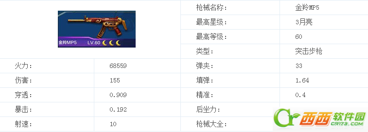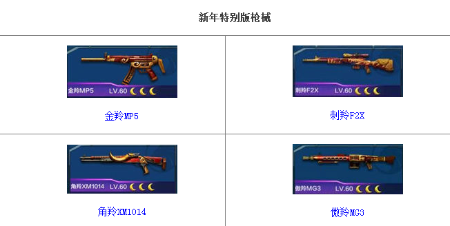 可以看到以上4把新枪械作为原版的升级版,就拿这次MP5的升级版来说,金羚MP5的各方面属性都要比之前的MP5好很多;之前的MP5满级只是50级而已,而金羚MP5作为A级武器,满级到了60级哦,伤害和一些基本的属性自然比MP5要好在各方面都有显著提升!在获得方法上4把新枪估计可以预见会是花钱抽,总之有爱的玩家耐心等待了