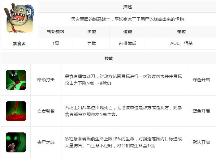 说明:暴食者还是更适合在竞技场里,强大的后期能力在竞技场中表现非常出色,在哀木涕和大小姐的双重保护下,暴食者存活率大大提升。而寒冰王子和院长加丁的伤害和控制是非常可观的,如果可以让对面不断减员,也会让暴食者越发强大。这套阵容主打的就是血线压制,以寻求秒杀对面脆皮的机会,整体比较霸道。