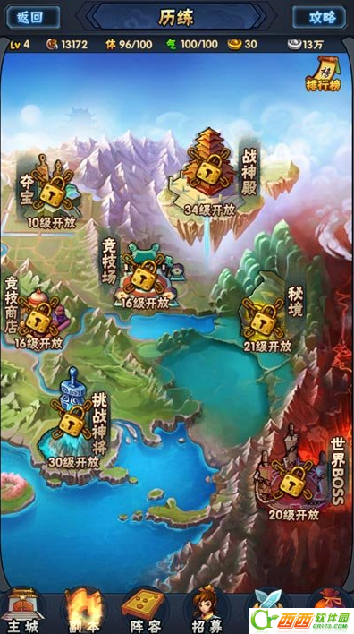 如果说每一款游戏应该找到一个亮点的话,本作的亮点就是独特的对战模式:pVE副本,玩家在游戏中可以将自己的队伍排列成三排,然后将武将的位置划分为前防、中攻、后辅三类,不同的阵法有着截然不同的效果加成。所以合理的布兵排阵是相当重要的,有时候可以扭转成败呀。