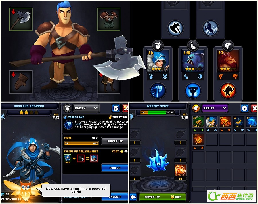 游戏毕竟有意思的是角色的技能并非通过升级角色来获得,而是通过装备 spirit(类似精灵) 的方式来获得,玩家的5种攻击方式都会根据装备的不同属性精灵来获得加成,例如战士的basic、directional 、mobility、instant、ultimate五项技能都会根据装备的精灵类型和能力来决定最终的攻击效果。这样的设定会让游戏里面的技能效果变得丰富多样,玩家的选择也各不相同,另外不同的精灵类型组合还会触发各项附加效果。而养成要素也主要体现在 spirit 的强化升级上,Spirit 的获得可以通过付费抽取,副本获得,升级方式则是通过吞噬其他spirit获得,基本上这套养成模式和常规的卡牌养成无异,而同样的消耗也不菲。