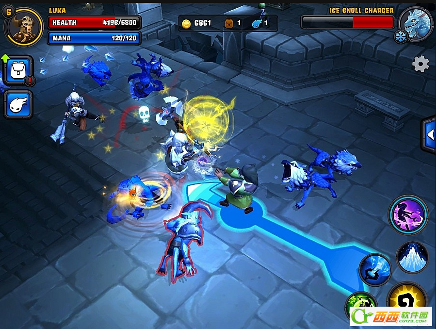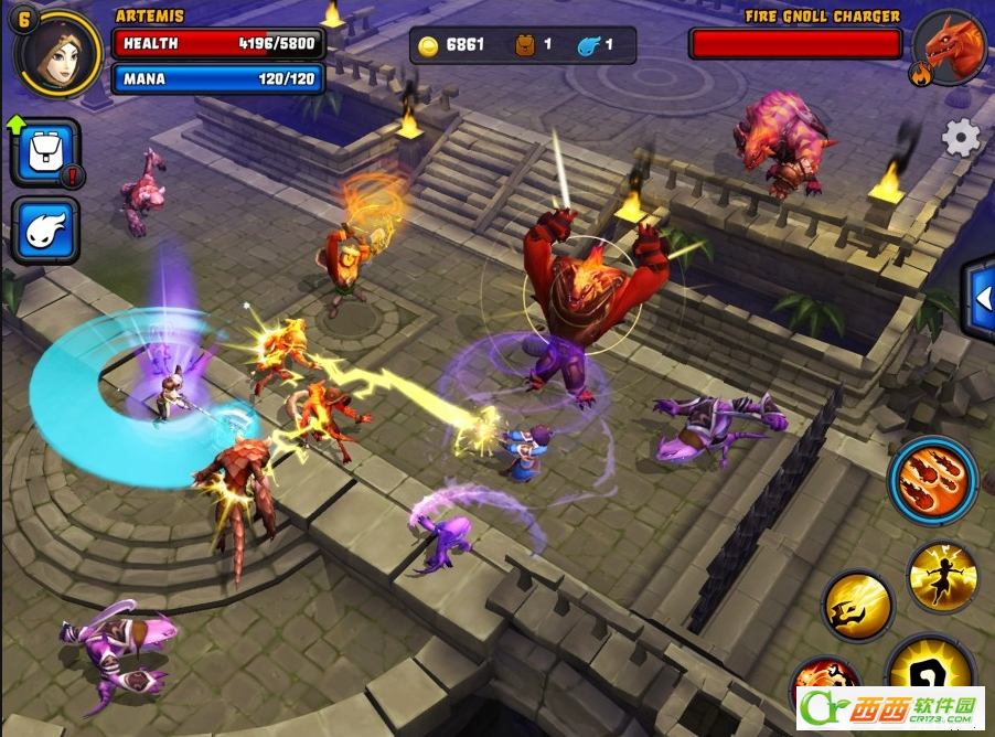 游戏提供了模拟摇杆和触屏点击两种不同的操控方式,在移动上玩家可以在两者直接进行选择或者搭配使用,不过系统默认提供的是触屏点击的操控方式,另外游戏还设置了手势操控,双击屏幕、滑动屏幕等都会默认使用角色的相应技能,实际体验下来整体操控还算流畅顺手,唯一感觉瑕疵的的是游戏没有自动锁定怪物的设定,玩家必须控制角色移动到怪物身边才能发动攻击。