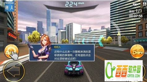 漂移模式下,游戏中界面不在是左右方向和跳跃键,而是左右键,左右漂移,和左右加速,六个键。玩家在弯道处,点击想要的漂移键,就可以漂移,然后在加速,即可回复正常。具体如下图: