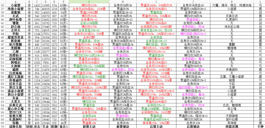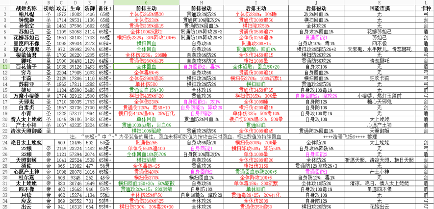 表中包括了战姬的前排技能与后排技能,还有其初始的战姬等阶,以及属性,大家可以来详细的了解一番。