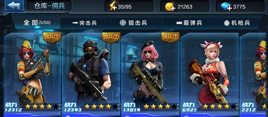 佣兵的属性和我们主角属性相同,都是由战力和火力组成的。