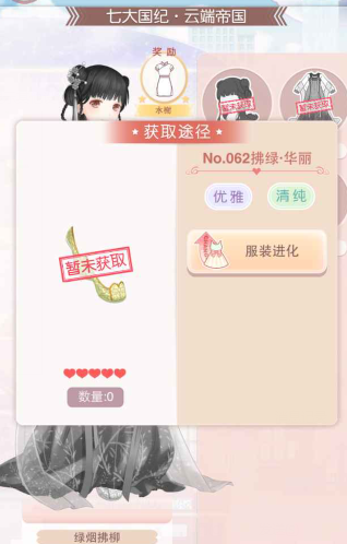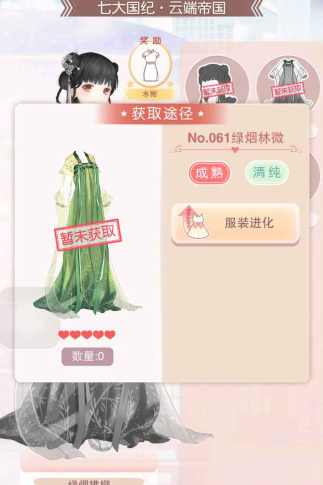 绿烟拂柳的四个部件都是要通过服装进化而来。
