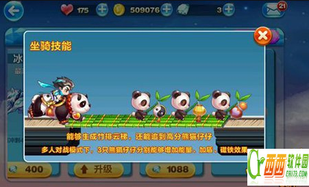 奥莉奥还能每隔一段时间在所有陷阱里铺满竹排,在这期间,会出现三只激萌小熊猫,和刀马旦会带来的猴子一样,吃到的话能获得超多分数哦~;