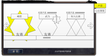 通过声望来判断玩家与门派的声望层级(共分四级),当声望值达到一定的程度后即可获得对应门派势力的奖励。