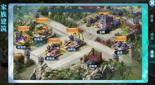 一家族打造进入家族页面,少侠们就能看到防具坊、首饰坊、兵甲坊等等,这些建筑,就是我们获得强装的宝地!