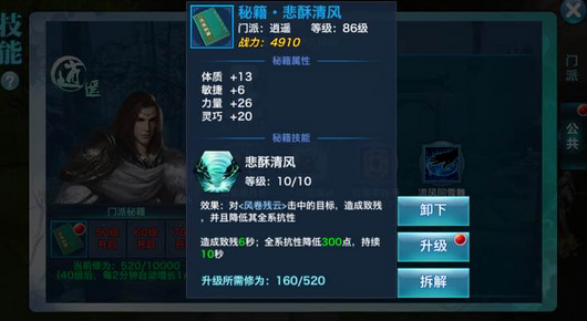 秘籍拆解后返还全部修为(还有略增加一些),有一定几率提升秘籍技能等级,该秘籍消失。