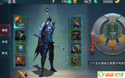 (2)宝石镶嵌界面可以让您对有孔的装备进行宝石镶嵌;