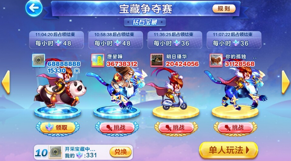 2、每日挑战次数5次(包含1次50钻石购买)100个