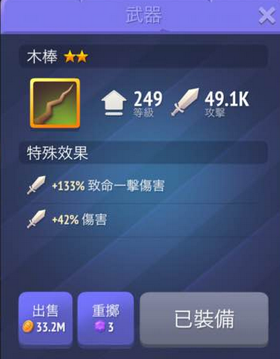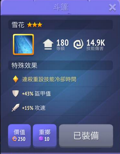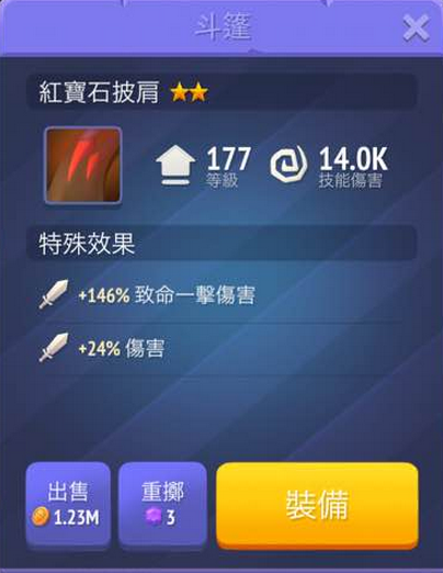 上面说的词条只见于武器和披风,下面是用过的装备,我之前实在没有爆伤特别高的二星武器用过爆伤加146的一星武器,一定程度上也能说明词条比星数更重要吧。
