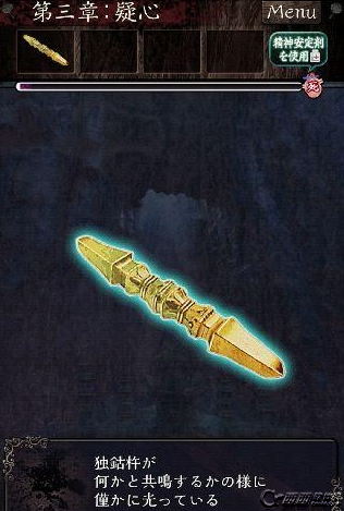 进入门内,把灯点亮,向右来到走廊场景,连击走廊下侧的木板,打开里面的神堂,获得金刚杵做法与之前一样,激活金刚杵产生共鸣,找腿,水潭场景,解印,过关。