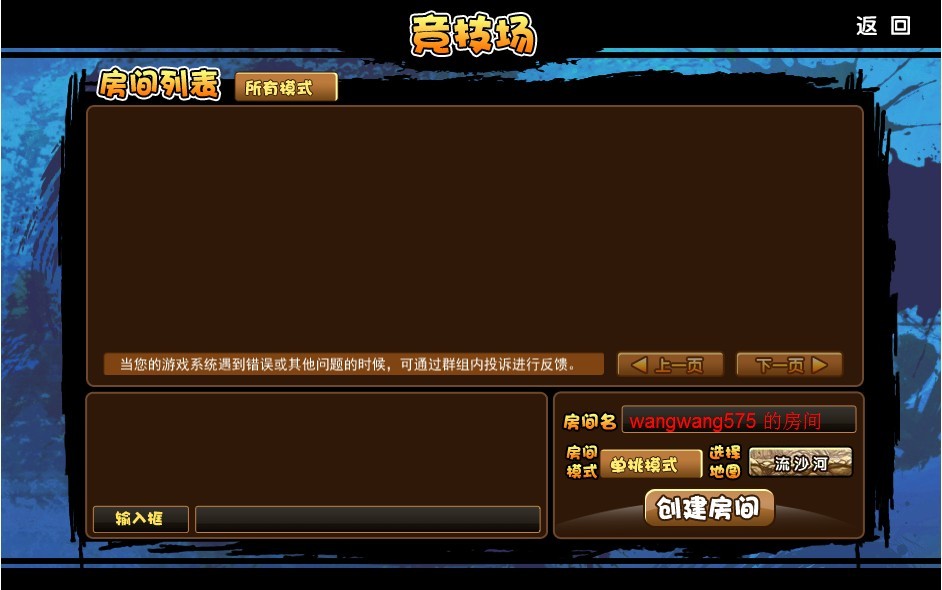 2进入竞技场后,将会看到如下场景,一般房间名会以玩家账号为名,玩家也可自己设置房间名。