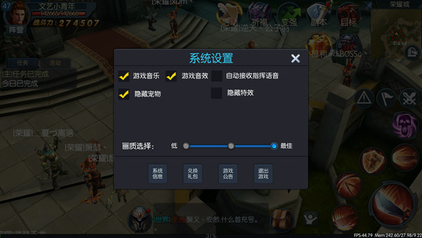 1、多人战斗场面如果觉得很卡,可以打开游戏设置界面,画面效果调到最低;很多玩家都没注意到,更新之后设置中多了两个功能选项,一个是隐藏宠物,一个是隐藏特效;这些都选了之后对游戏流畅度有一定的提升。