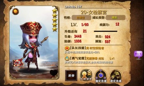 强化合成:卡牌的等级,必须通过强化合成功能才能升级,卡牌的等级是通过卡牌吞噬其他卡牌而获取经验,不同星级的卡牌,等级的上限不一样,同时吞噬卡牌也有一定几率的提升玩家的队长技能等级,所以请玩家在吞噬卡牌的时候最好选择同属性的卡牌吞噬,已经触发队长技能的提升