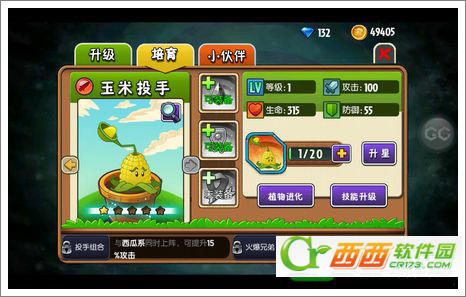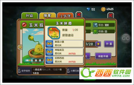 1、在植物界面点击植物,我们发现升星,需要相对植物的拼图,比如小编的玉米投手,需要20个玉米投手的拼图!