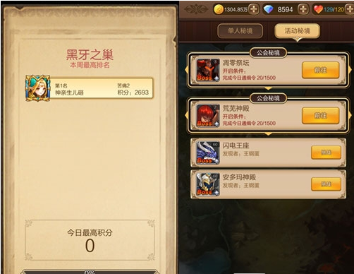 而公会秘境则需要公会达到五级后才能开启,当积累次数足够之时,公会的活动页面就会触发公会秘境。公会秘境和好友秘境的玩法相差不大,同样有限制进入的人数,不过相比三人就可以推倒的好友秘境Boss来说,公会秘境的镇守者更加强悍。相对的,即使没有击败Boss,在时间结束之后仍会根据进度分发相应的奖励给公会全员。