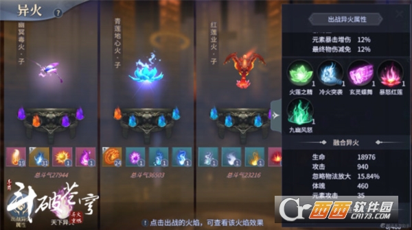 三千焱炎火提供的是生命、攻击和体魄,其他子火提供的是生命、攻击和元素攻击;