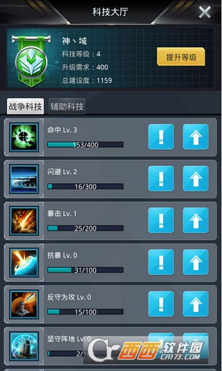 1、军团科技分为战争科技和辅助科技。其中战争科技能大大加强部队作战能力,包括暴击,增伤,减伤,闪避等,前期建议由军团长统一,一起升级一个科技,这样集中研究比较好,个人比较推荐闪避。辅助科技则能提升资源产量,战斗经验,载重,仓储,载重,这里个人推荐战斗经验,载重,仓储,资源生产上升1%说实话影响不大。