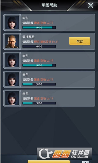 军团帮助也是军团非常重要的福利,发出请求后,军团成员能帮助你加快军团建筑速度。如果满帮助的话,1个小时的建筑能加速近1半的速度,大大加快建筑速度。故而前期一定要选择活人军团,这样才能获得大量帮助。